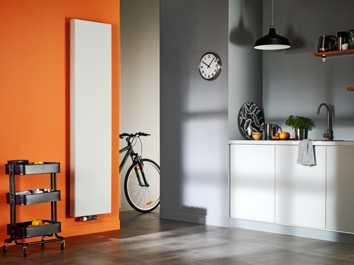 Kos V:ssä on sileä etupaneeli, joka tarjoaa yksinkertaiselle ulkoasulle ajatonta eleganssia. Kaarevat, litteät päätylevyt takaavat puhtaat linjat joka puolelta. Kuten muissakin pystysuorissa sisustuselementeissä, muotoilun tarkoituksena ei ole vain tuoda sisustukseen korkeutta, vaan myös mahdollistaa tehokkaan lämmittimen sijoittaminen tiloihin, joissa seinäpintaa ei ole paljon. Kos V -lämmitintä on saatavilla useissa eri väreissä, mukaan lukien harjattu ruostumaton teräs. Lisävarusteena saatavana myös ruostumattomasta teräksestä valmistettu tyylikäs pyyhetanko, joka lisää toiminnallisuutta kylpyhuoneessa ja keittiössä. Mukana kannakkeet, päätylevyt, asennusklipsit, asennusmalli, ilmausruuvi, 3 umpitulppaa sekä ruuvit ja muoviset kiinnitystulpat. Valkoinen RAL 9016.