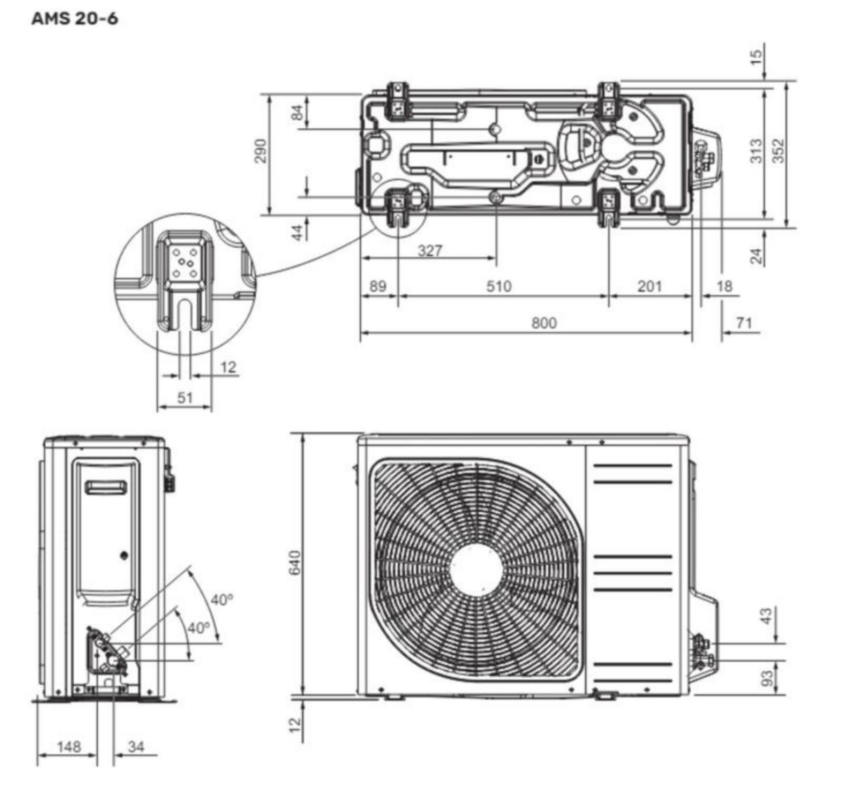 - Ulkoyksikön leveys: 800 mm
