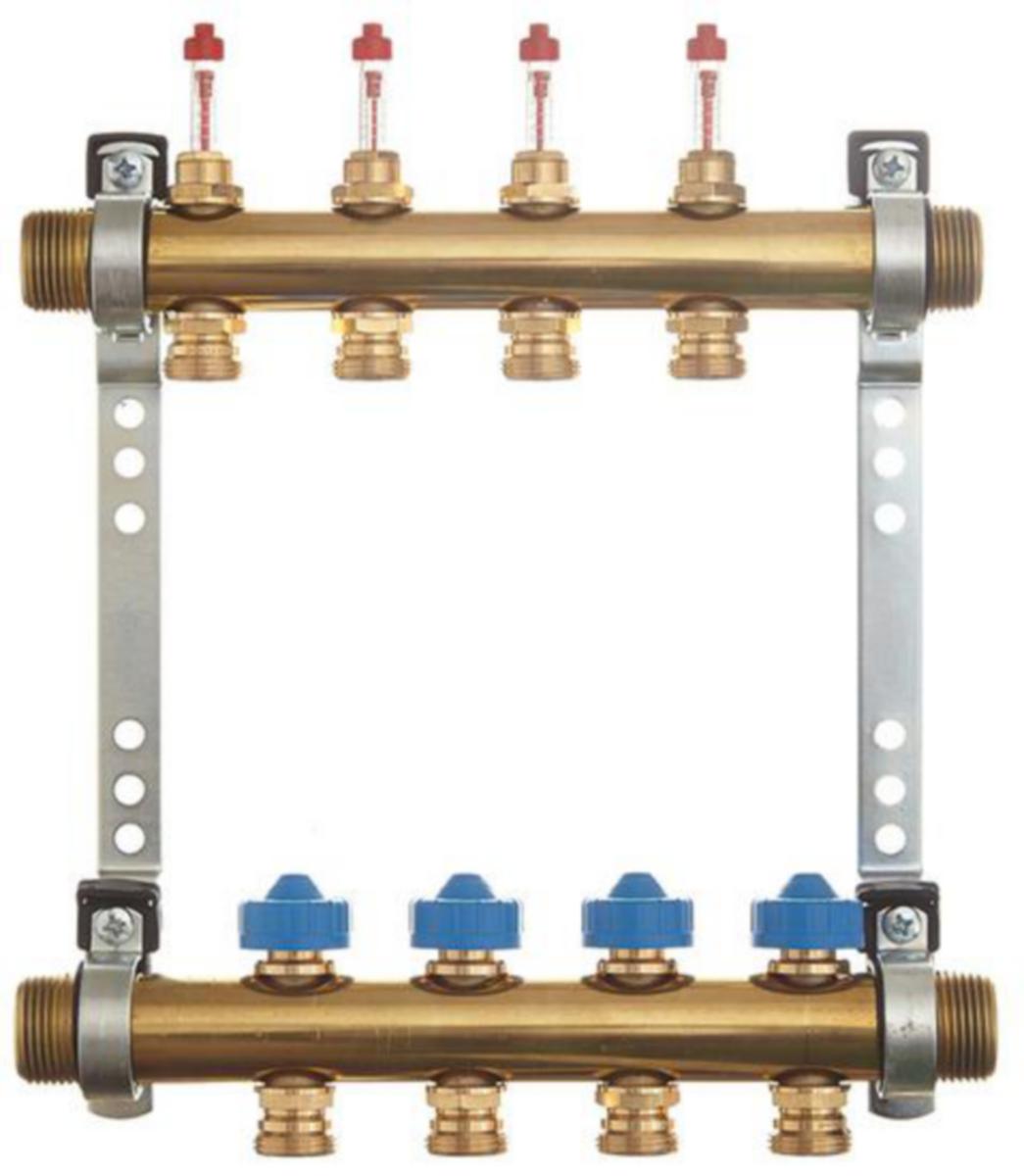 Roth lattialämmitysjakotukki. Lujaa, korroosiota kestävää messinkiä. Meno- ja paluujakotukissa 25 mm sivuttaissiirtymä piirien ulosotossa. Jakotukissa on G25 (1") ulkokierre kummassakin päässä, mikä mahdollistaa syöttöputken liittämisen kumpaan päähän tahansa. Virtausmittarissa on asteikko 0,1-4 l/min. Jakotukkiputkessa on 1" (G25) ulkokierre tasotiivistämistä varten. Liittimessä on ulkokierre EURO ¾" (G20).