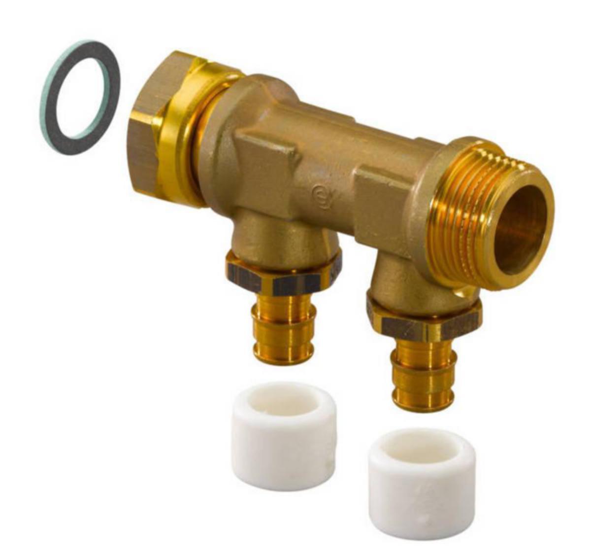 Jakotukki käyttövedelle.Rungossa 3/4 kierre (uk, sk pyörivä mutteri). 15 mm putket liitetään jakotukkiin Q&E-liitoksilla. c/c 35 mm. Jakotukit eivät sovellu jakotukkikaappiin. Materiaali DR-messinki.