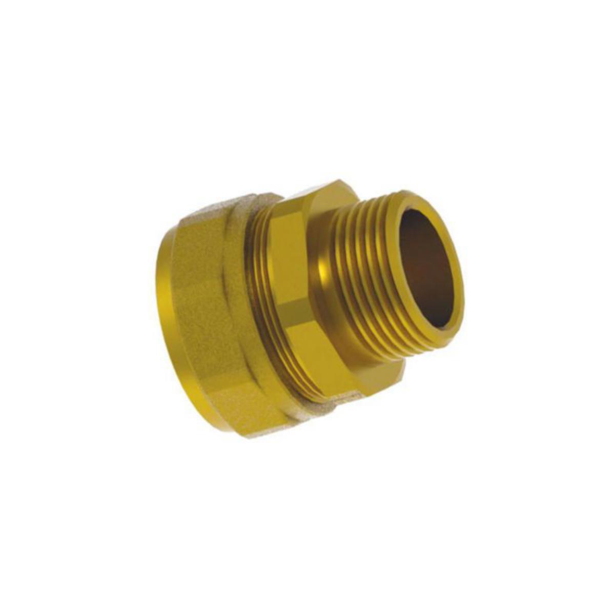 Suoraliitin RauHeat-lattialämmitysjärjestelmän syöttöputkille. Erikoismessinkiä.