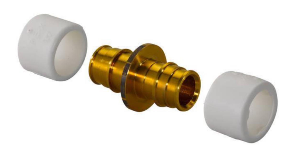 Jatkoliitin DR-messinkiä. Sisältää puristusrenkaat.