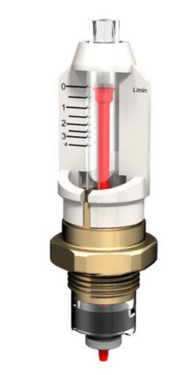 Virtausmittari WehoFloor-lattialämmitysjärjestelmän jakotukkiin. Asteikko 0,5-4 l/min, sisältää roskasuodattimen.