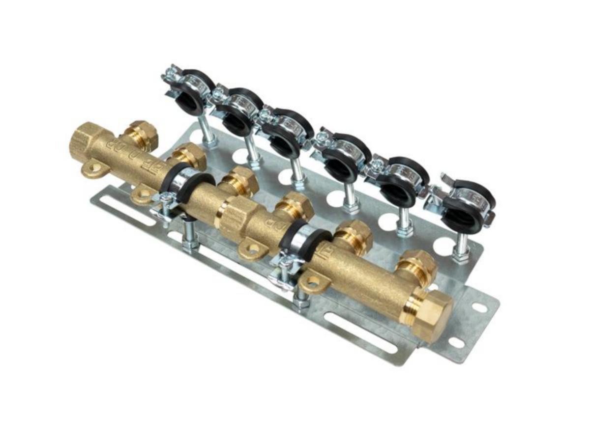 Eristetyillä kannakkeilla varusteltu käyttövesijakotukin teline max 6paikkaiselle jakotukille. ALT-6P on yhteensopiva muiden Tulvari ALT-tuotteiden kanssa.