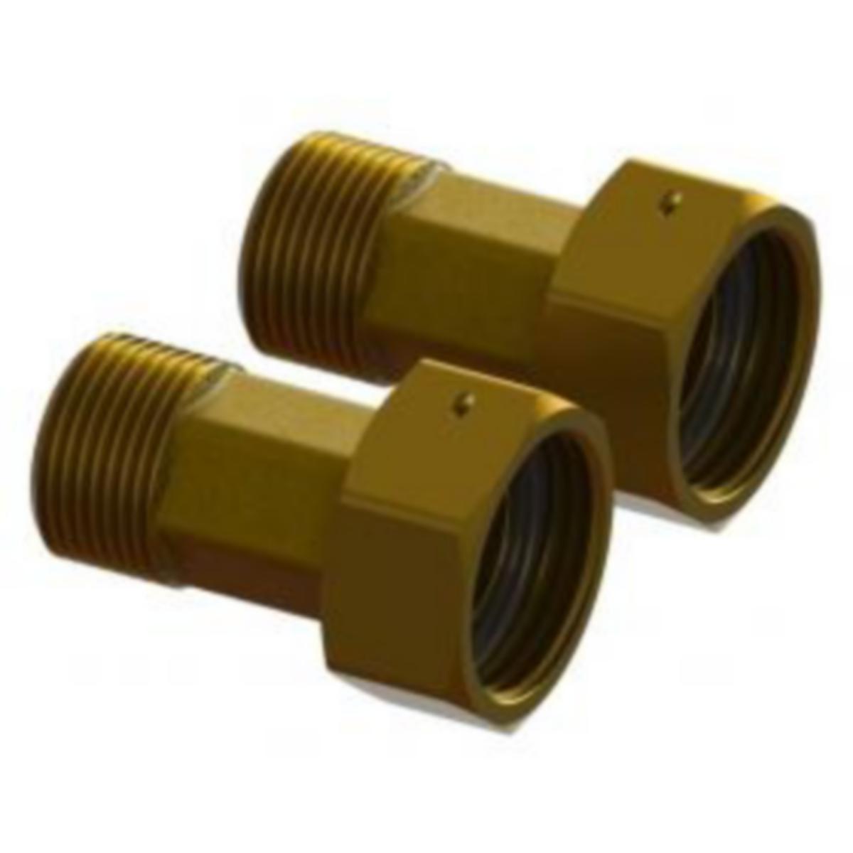 Liitinpari vesimittarille. Sisältää massatiivisteet, jotka soveltuvat kylmälle ja kuumalle käyttövedelle. Liittimen rungoissa on koneistettuna "uloke", joka pitää tiivisteen paikallaan asennuksen ajan.