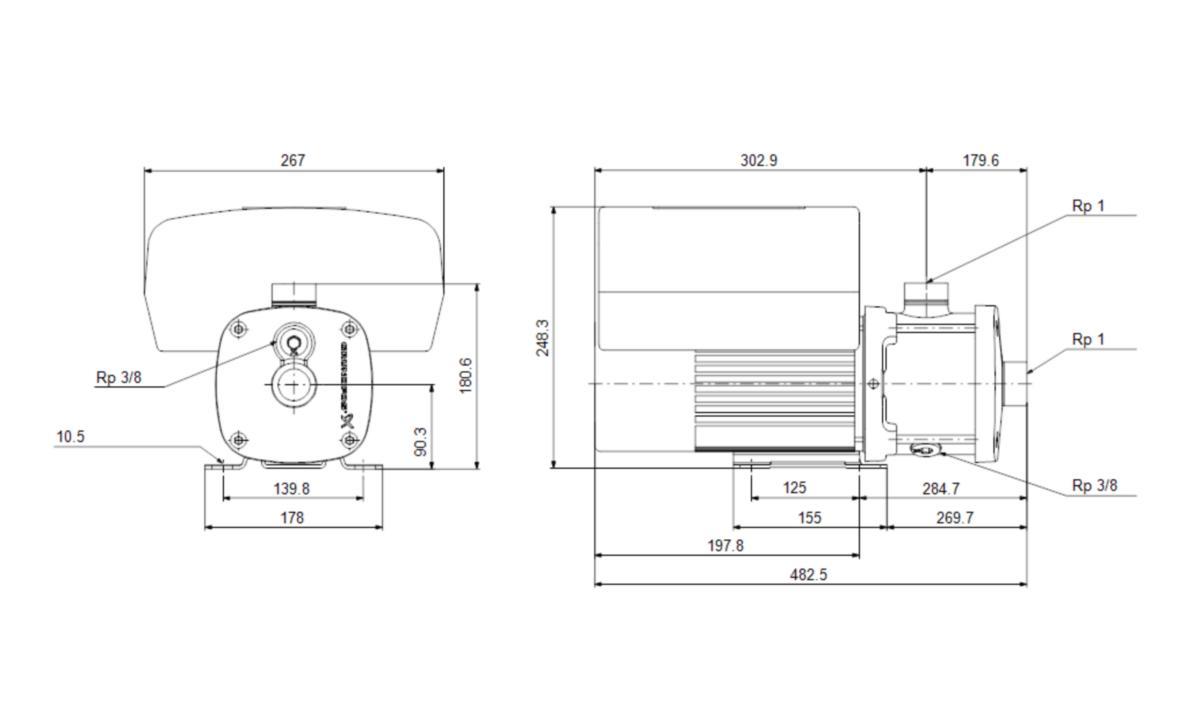 - Pumpun korkeus: 482.5 mm