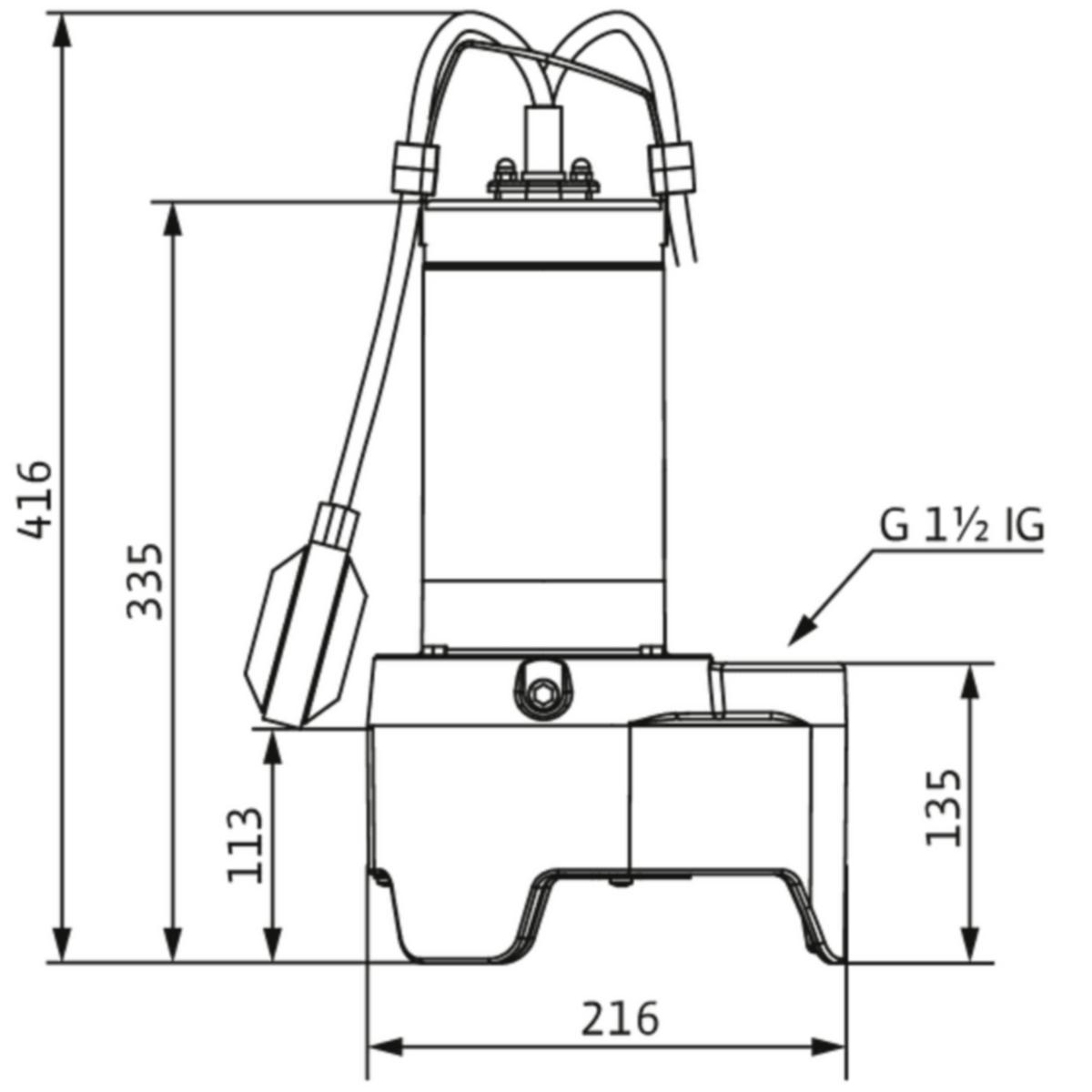 Jätevesipumppu, jossa Vortex-juoksupyörä ja pystysuuntainen kierreliitäntä. Hydrauliikkakotelo valurautaa, juoksupyörä muovia. Pintajäähdytteinen moottori integroidulla käyttökondensaattorilla ja itsekytkevällä termisellä moottorin valvonnalla. Moottorin kotelo jaloterästä. Öljytäytteinen tiivistekammio kaksinkertaisella tiivisteellä: moottorin puolella on akselitiiviste, pumpun puolella liukurengastiiviste.