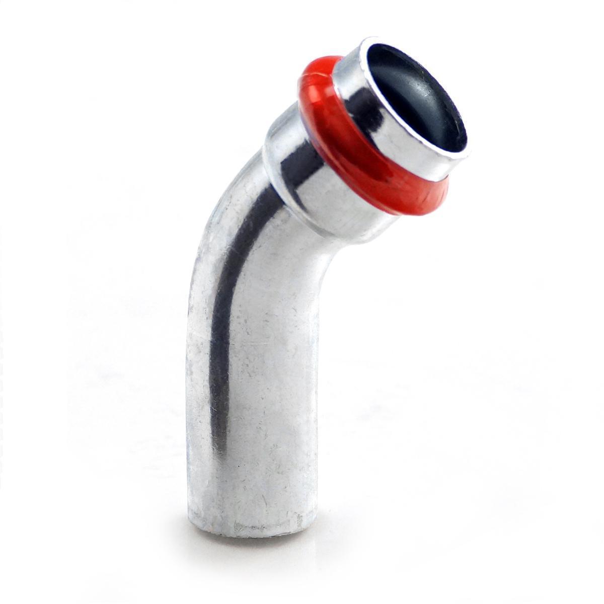 A-press V Sähkösinkitty puristusliitinjärjestelmä (12-54 mm) soveltuu lämmitys- ja jäähdytysjärjestelmille, paineilmalle sekä neutraaleille kaasuille. Puristusliittimet (12-54 mm) on varustettu punaisella puristusindikaattorilla. Sen ansiosta on helppoa tarkistaa, onko liitin puristettu vai ei. Lisäksi O-renkaassa on vuodonilmaisin lisävarmistuksena, joka puristamattomana päästää vettä läpi painekokeen aikana. Liittimet (12-54 mm) puristetaan V-mallin leuoilla. O-rengas on EPDM kumia. FPM-tiiviste tilattavissa erikseen.