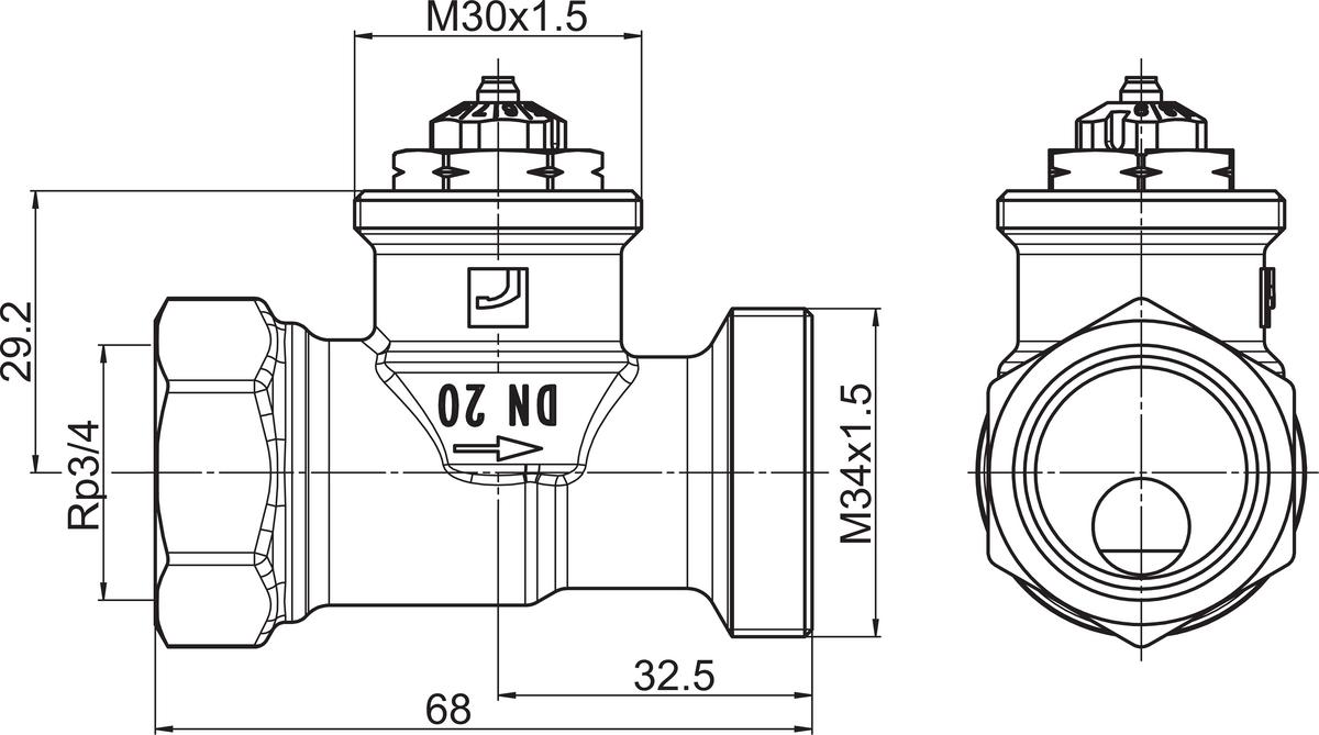 - Termostaattisen säätöelementin koko: M30 x 1,5
