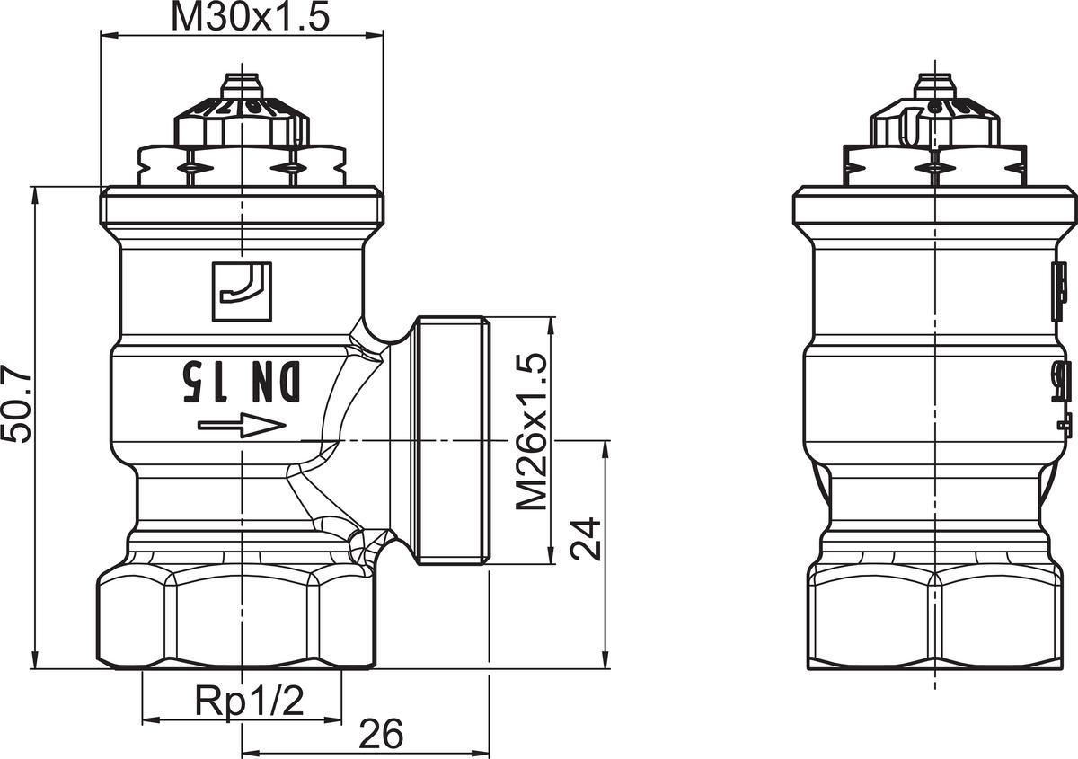 - Termostaattisen säätöelementin koko: M30 x 1,5