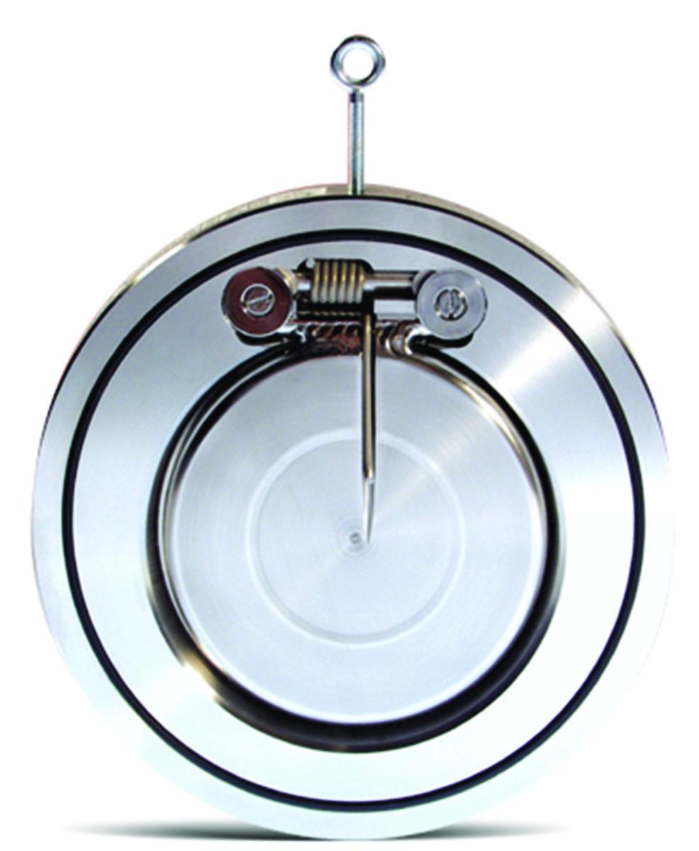 Check valve for horizontal or vertical mounting, flow direction upwards and downwards as the flap is provided with spring.