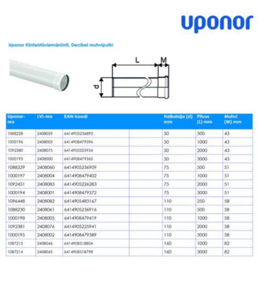 Uponor Decibel on ääntä vaimentava kiinteistöviemärijärjestelmä, jota käytetään rakennuksen sisäpuolisessa viemäröinnissä. Järjestelmä on mitoitettu EN 1451 mukaisesti ja on yhteensopiva Uponor HTP -kiinteistöviemäröintijärjestelmän kanssa.
