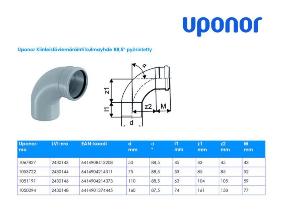 - Putken ulkohalkaisija liitäntä 2: 75 mm