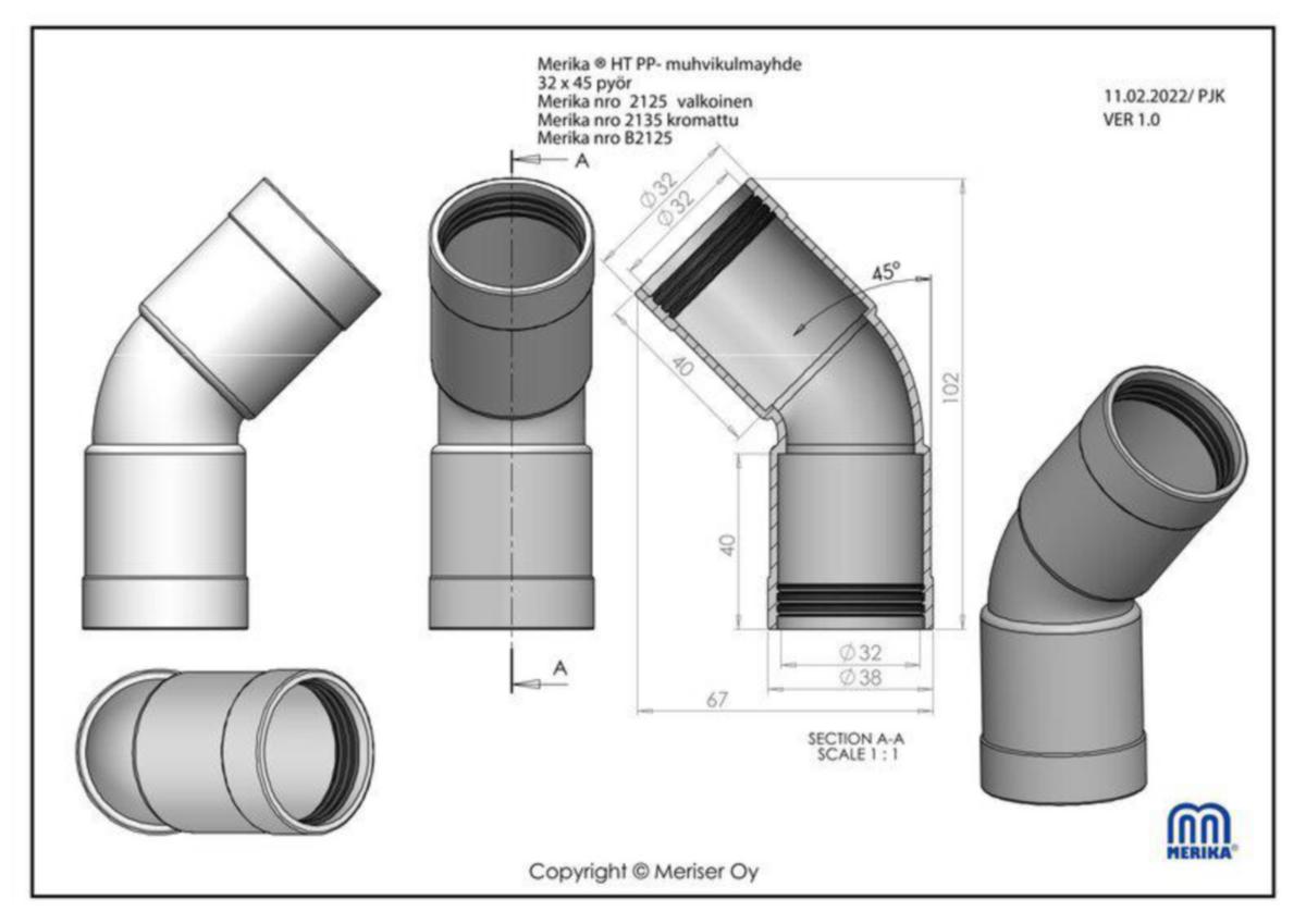 - Putken ulkohalkaisija liitäntä 2: 32 mm