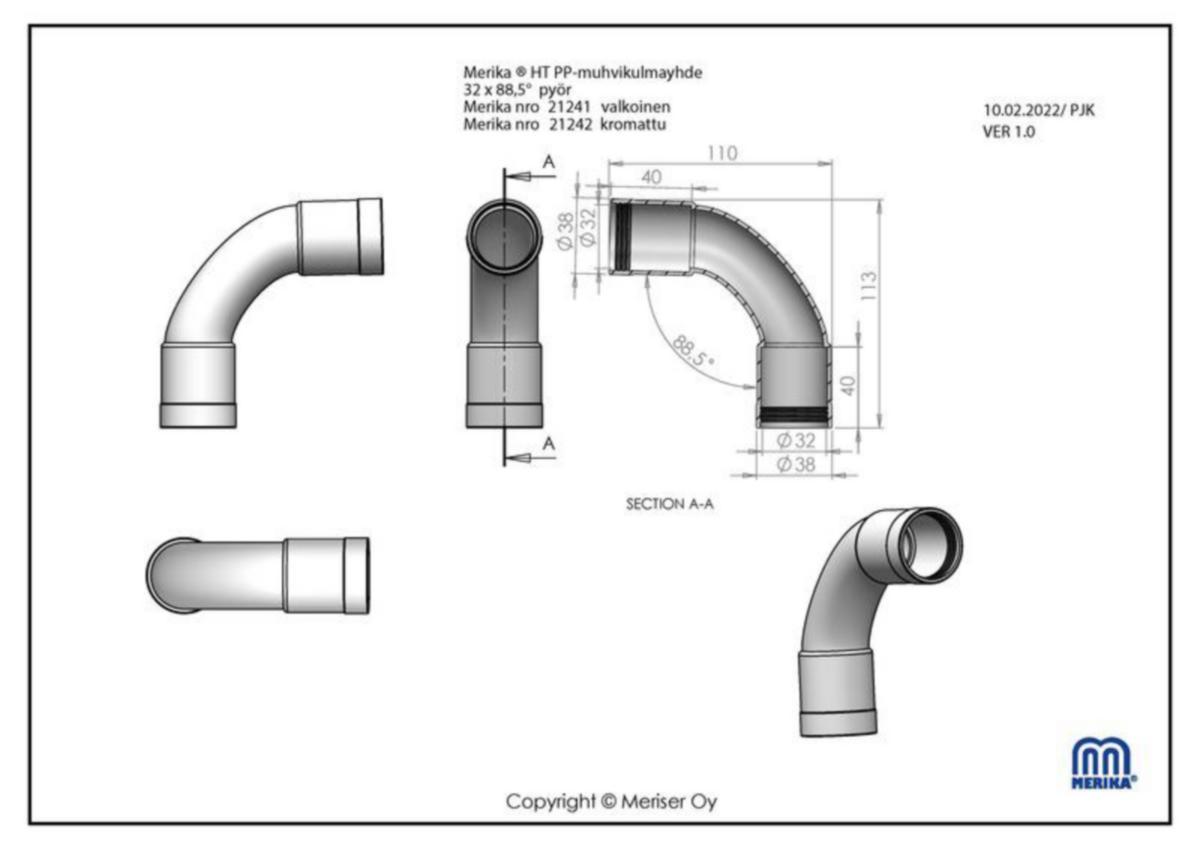 - Putken ulkohalkaisija liitäntä 2: 32 mm