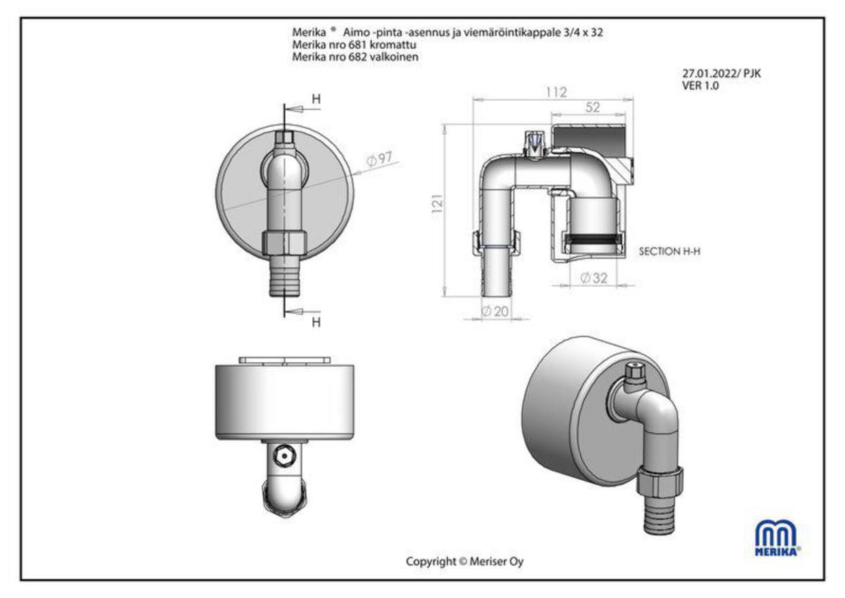 PESUKONEEN POISTO PINTA SARJA 3/4X32 VALKOINEN MERIKA