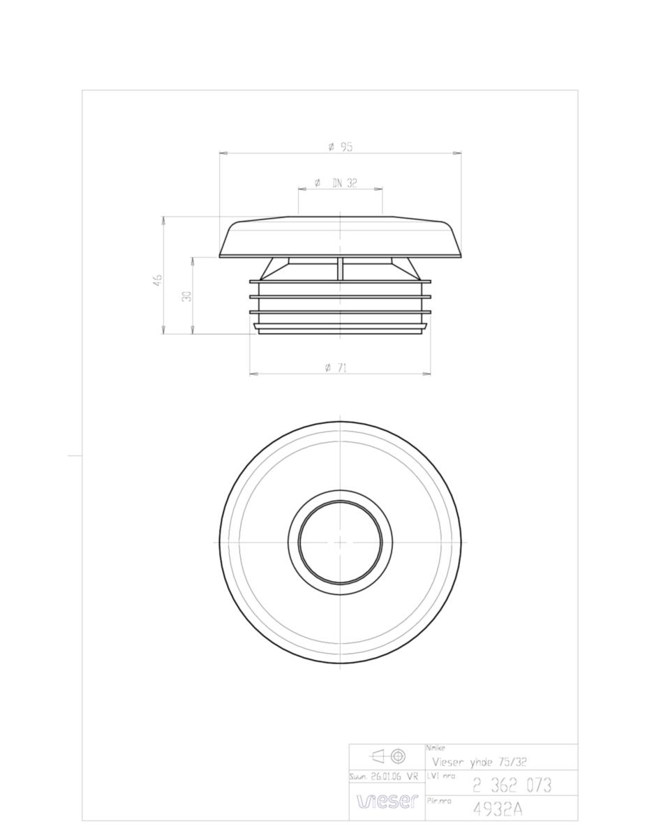 Vesilukon poistoputken liittämiseksi ilman erillistä tiivistettä viemäriputken muhvittomaan päähän. Toimii samalla peitelevynä. Soveltuu PP- ja PVC- putkille.