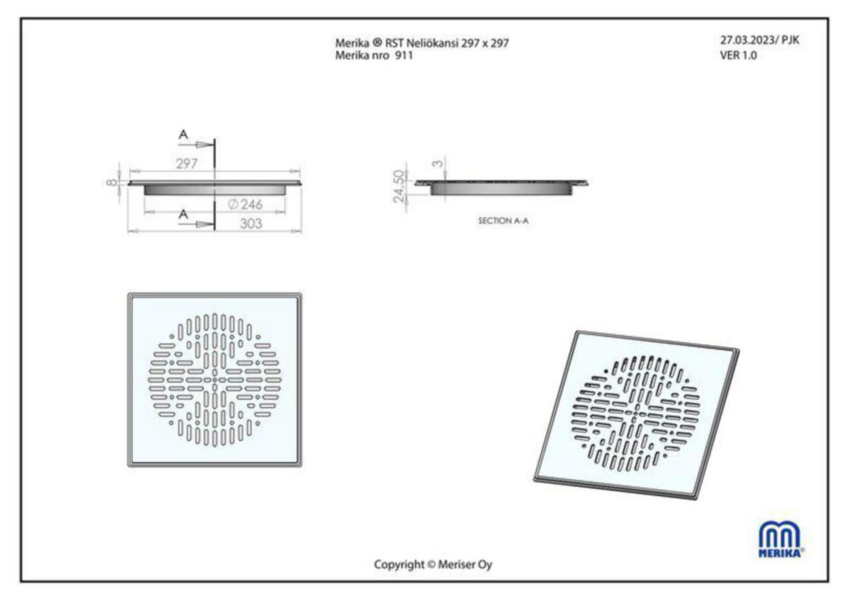 - Lattiakaivonkannen materiaali: ruostumaton teräs