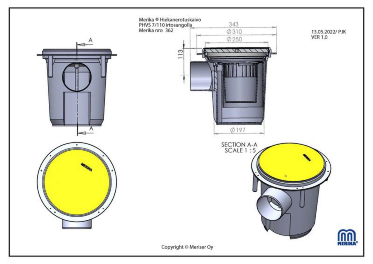 -Virtaama: 75 mm 1,6 l/s, 110 mm 1,9 l/