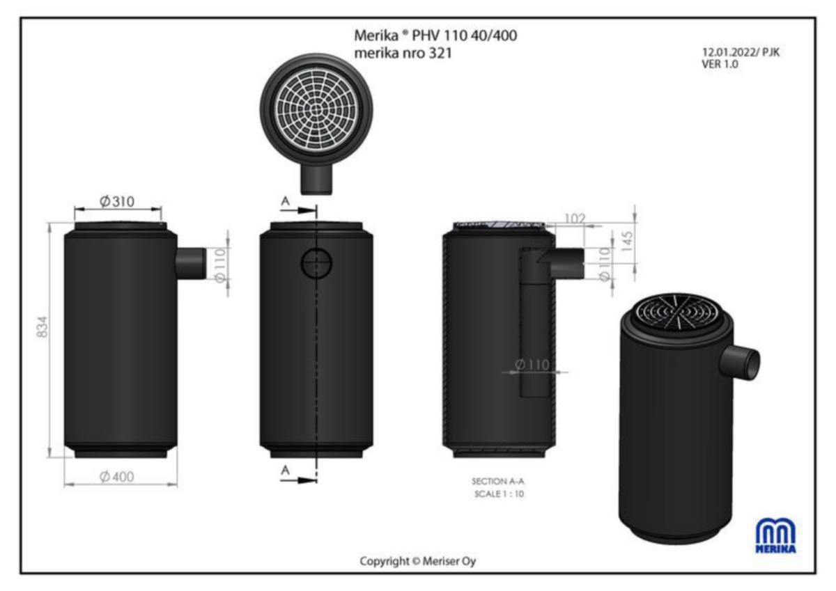 - Putken ulkohalkaisija, kaikki liitokset: 110 mm