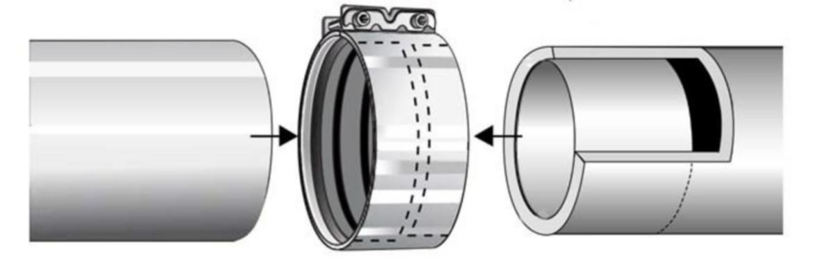 Liitospanta, joka on suunniteltu valurauta- ja muoviviemäreiden yhteenliittämiseen. Luotettava ja tilaa säästävä liitostapa, jossa metallinen tukirengas estää muoviputken kasaanpainumisen sekä varmistaa liitoksen tasaisen kiristymisen.