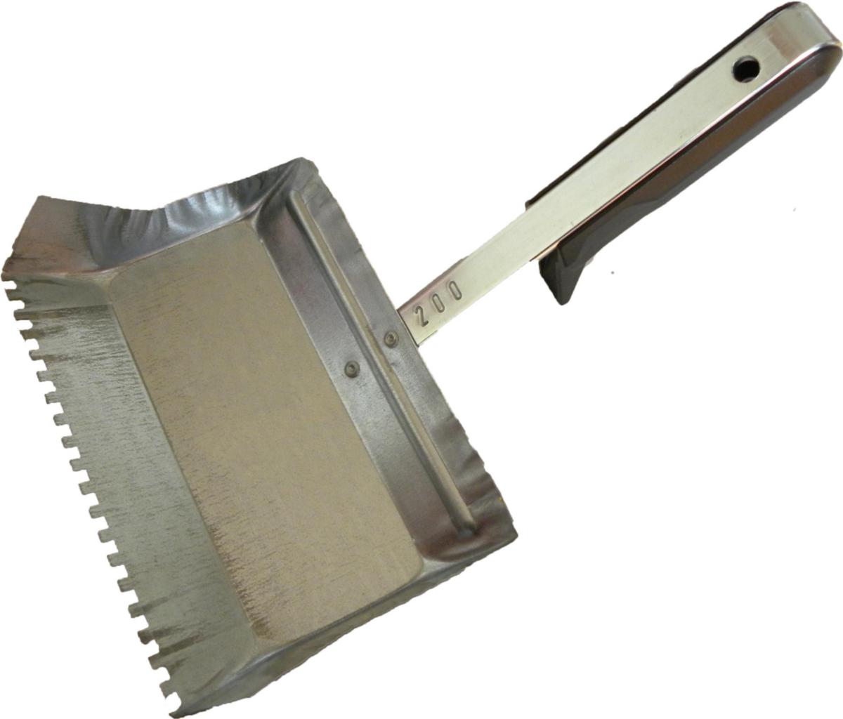 Liimakauha puristettua teräslevyä. Etureuna hammastettu. Esim. kevytbetonin liimaukseen.