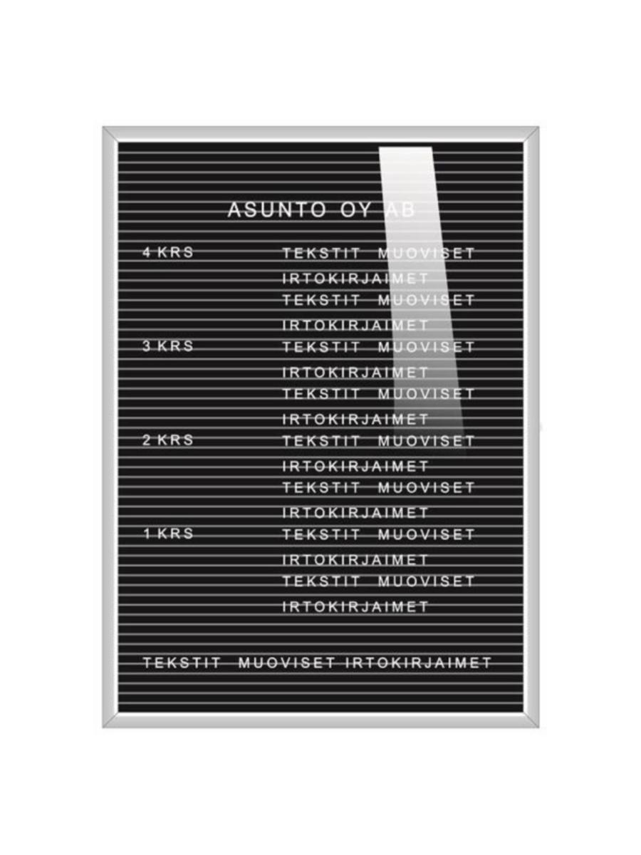 Nimitaulu / porrastaulu alumiinikehys musta huopa suoja-akryyli