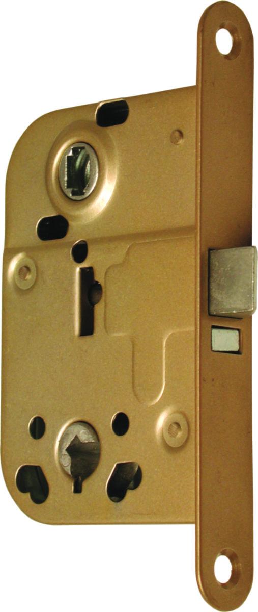 Symmetrinen monitoimilukko väli- ja wc-oviin. Avaimenreiän etäisyys 45 mm. Sisältää 1 avaimen. Lukon vastarauta toimitetaan erikseen.