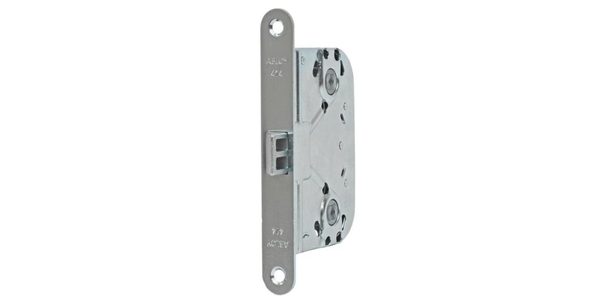 Symmetrinen välioven lukko, joka voidaan haluttaessa lukita avaimella tai WC-vääntönupilla. Lukko voidaan varustaa pelkästään painikkeella tai sekä painikkeella että WC-vääntönupilla/avaimella.