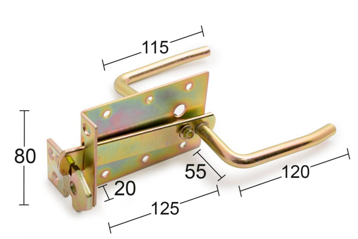 Työntösalpa teräksestä oviin, luukkuihin, portteihin. Pinta-asennettava.Teräs. Keltapassivoitu.