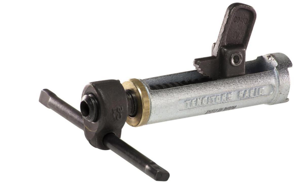 3. Muottien purkaminen. Lyö lukon kiilaa ohuemmasta päästä kevyesti vasaralla tai lekalla, jolloin lukko vapautuu ja voidaan irrottaa siteen päästä. Lukko on heti käytettävissä uudelleen ja on huolellisesti sinkitty
