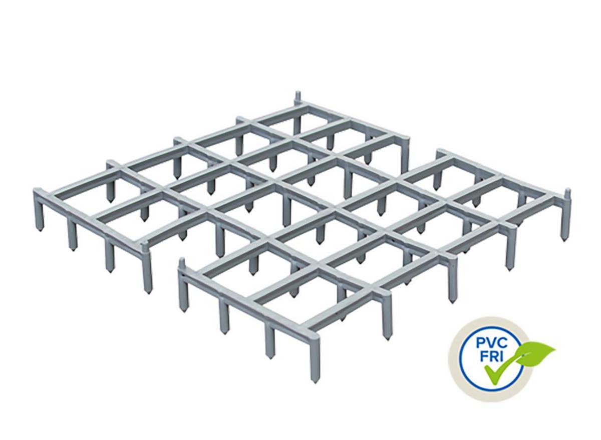 A very popular base spacer. Easy to handle, transport and store. Completely invisible in the finished concrete structure. Apply approx. 2 x Piggelin per m², position the reinforcement, finished! Quick and stable spacing that saves money.