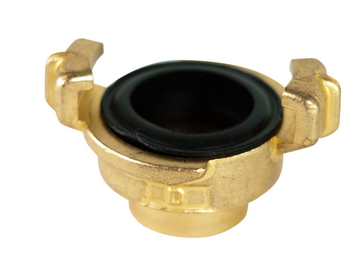 Metallinen kynsiliitin kumisella tiivisterenkaalla. Vedelle ja paineilmalle. Liitäntä: sisäkierre.