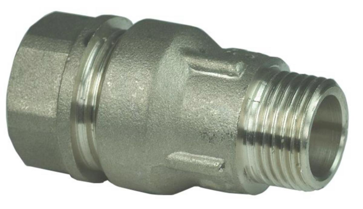 Muoviputken puserrusliitin, suora, putki/ulkokierre, messinki