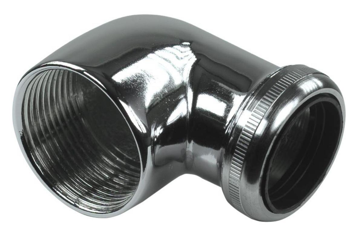 Metallinen pesuallaskulma. Mukana kuminen tiivisterengas. Sisäkierre 1 1/4" x 32mm.