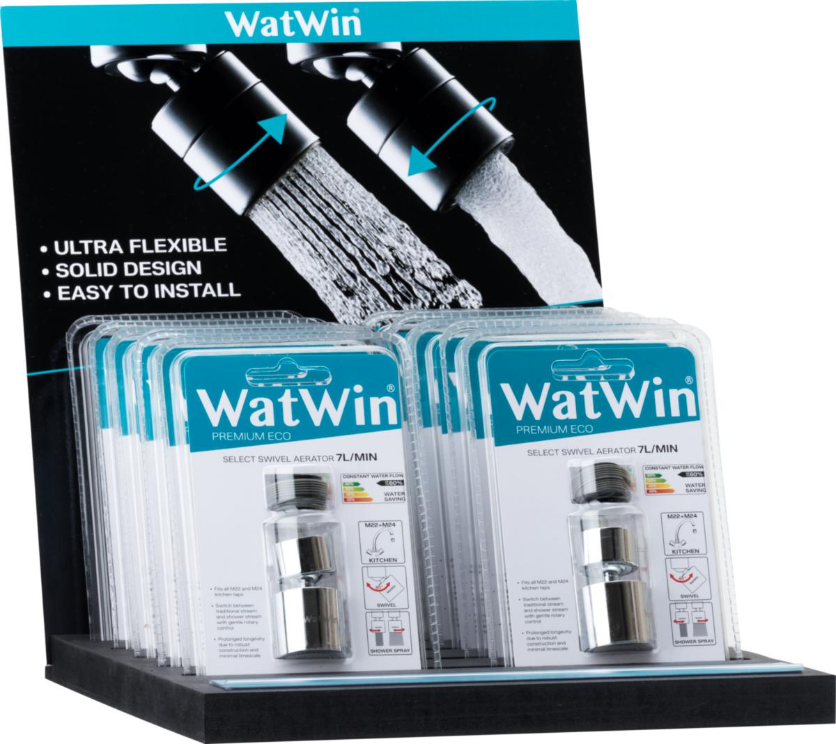 WatWin PREMIUM ECO: Korkealaatuinen hanasta riippumaton tuote, joka vähentää veden ja energian kulutusta olemassa olevissa hanoissa jopa 60 %.