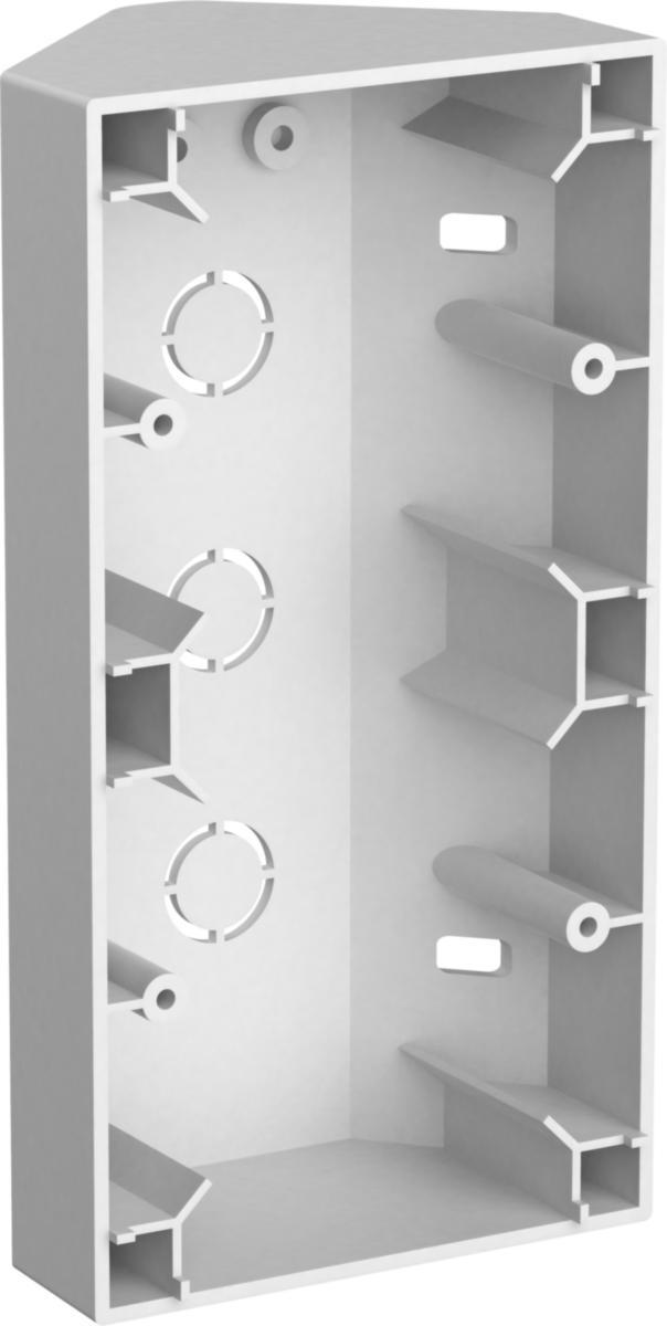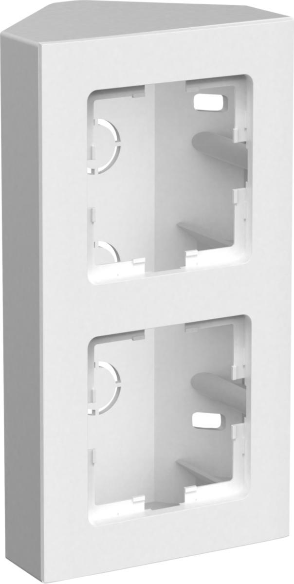 Kulmapistorasian tyhjä asennuskehys pinta-asennettavaksi kulmiin tai esimerkiksi keittiön kaapiston alle vaakaan. Useita kulmapistorasioita voidaan asentaa vierekkäin. Voidaan asentaa myös pöytälevyyn, sillä kulmakehyksessä on ehjä pohja. Pohjassa on valmiiksi merkityt sisääntulopaikat, 16mm tai 20mm. Sähkön voi tuoda myös pintavetona kehyksen sivulta. Sisältää riittävästi tilaa myös vedonpoistolle. Toimitetaan yhdistelmäkehyksellä. Tyhjään asennuskehykseen voidaan asentaa Connect 2 Home -sarjan uppoasennettavat tuotteet tarpeen mukaan.