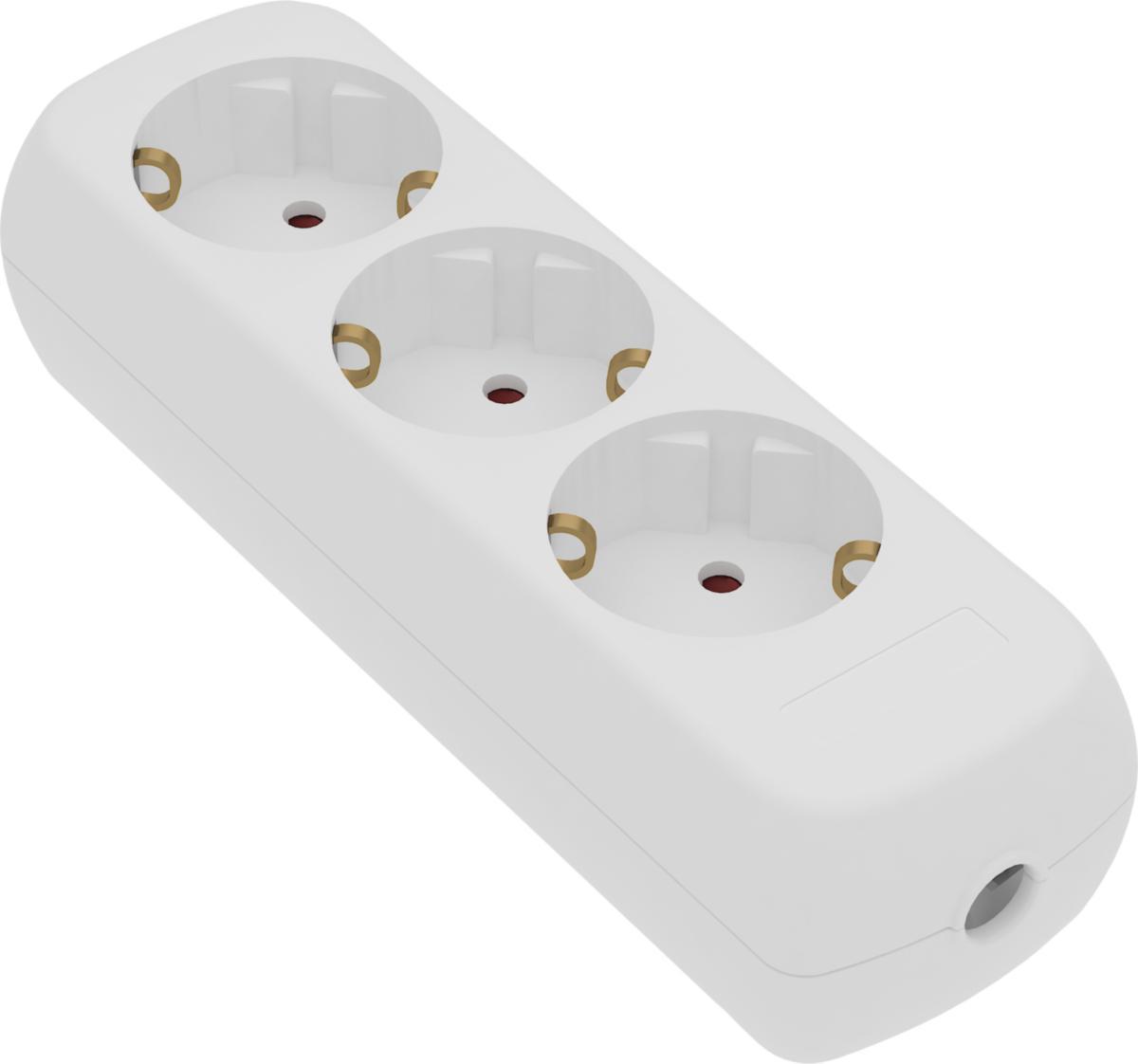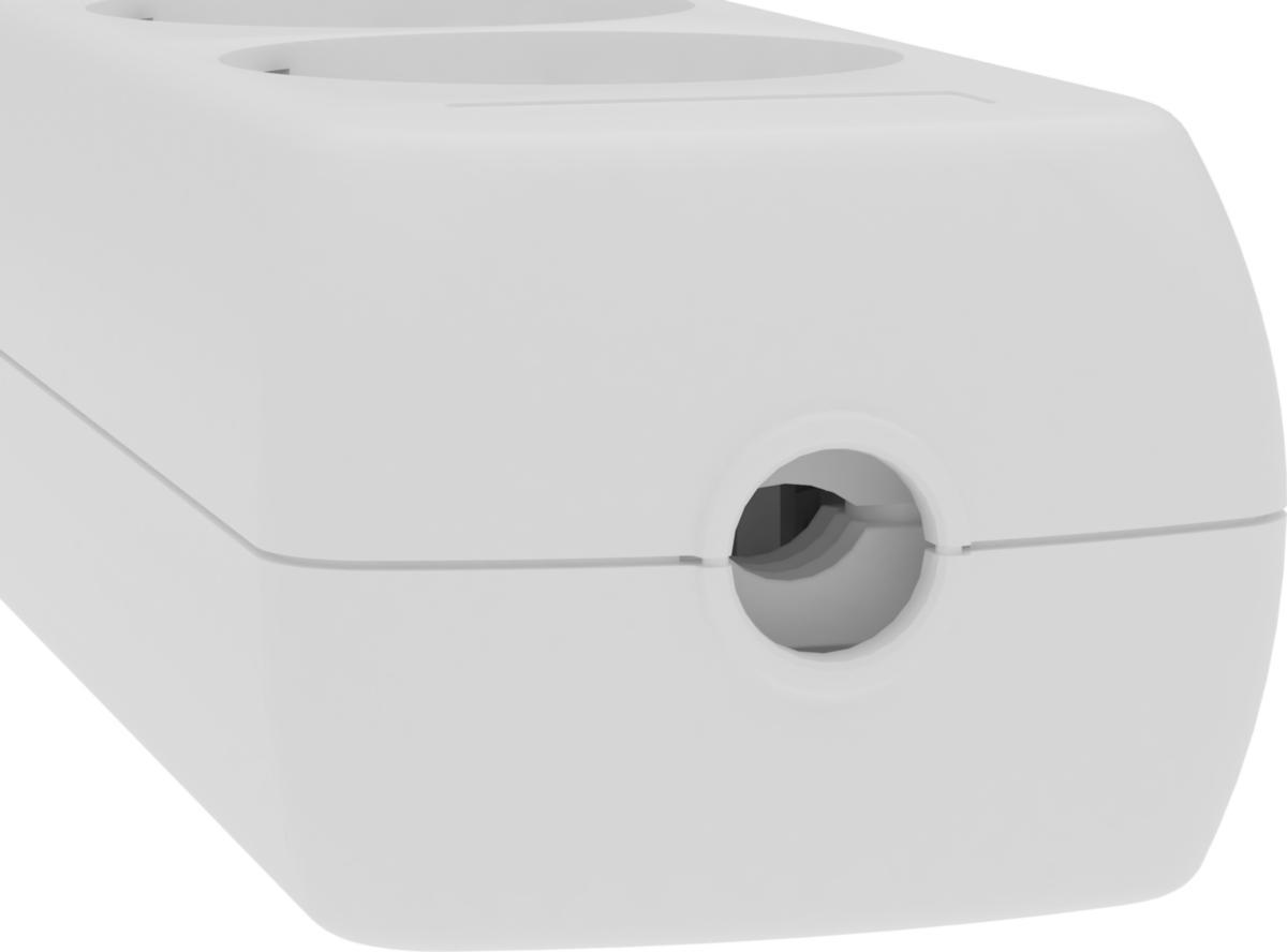 Maadoitettu jatkojohdon runko ilman kaapelia (vain mötikkä, johon pistokkeet laitetaan), vinoilla pistokepaikoilla.