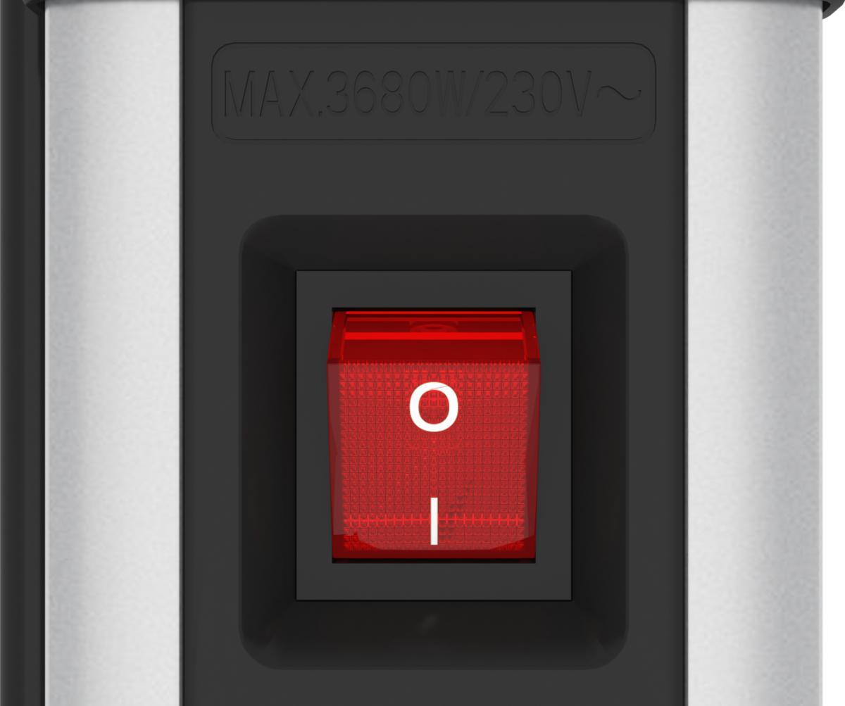 Energian säästämiseksi, kun pistorasian liitettyjä yksiköitä ei käytetä, on kytkin, joka katkaisee helposti virran koko pistorasiasta. Kytkimessä oleva valo syttyy, kun virta on päällä.