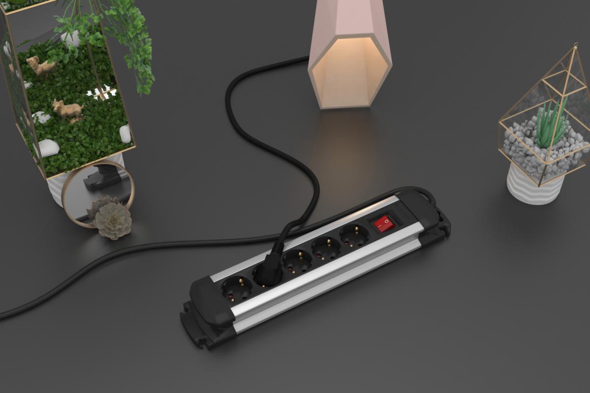 Jatkojohto, maadoitettu, kytkimellä, alumiini