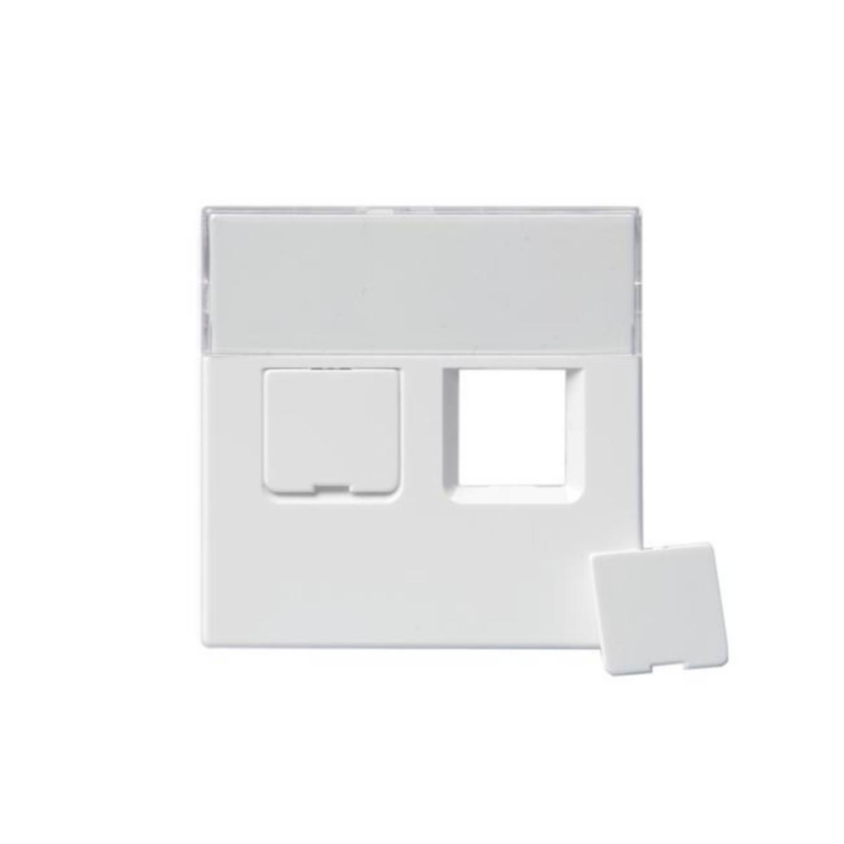 Keskiölevy ABB Impressivo -datapistorasiaan. CAT6-liittimet A- ja B-kytkennän merkinnöillä (suojaamattomat).