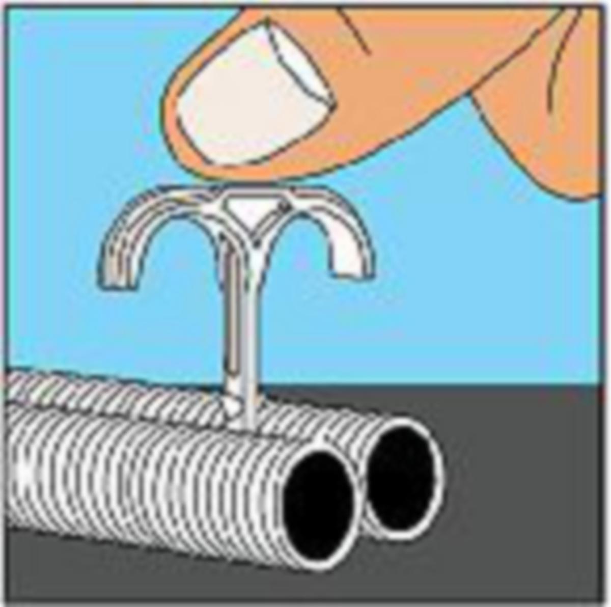 DSS 20-25 valkoinen. Samansuuntaisten kaapelien12-25mm tai putkien 20-25mm asentamiseen. Poraa 6 mm reikä ja asenna.Ei tulppaa/ruuvia. Moderni ulkonäkö. Nopea asennus.