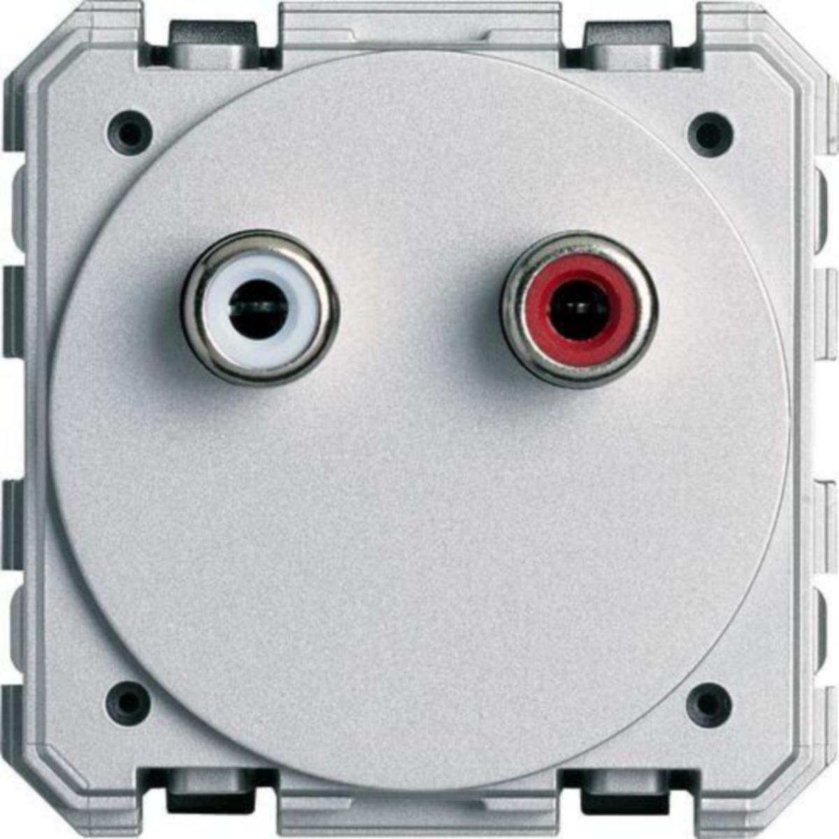 RCA-liitäntärasia stereoliitäntään kaiuttimien ja äänilähteiden välille vasemmalle ja oikealle kanavalle. Käytettäväksi 45x45 mitoitetuissa johtokanavissa, lattiarasioissa ja pistorasiapylväissä. Pikakiinnitys profiilien etureunaan kiinnityskynsillä. Keskiölevy tilattava erikseen.