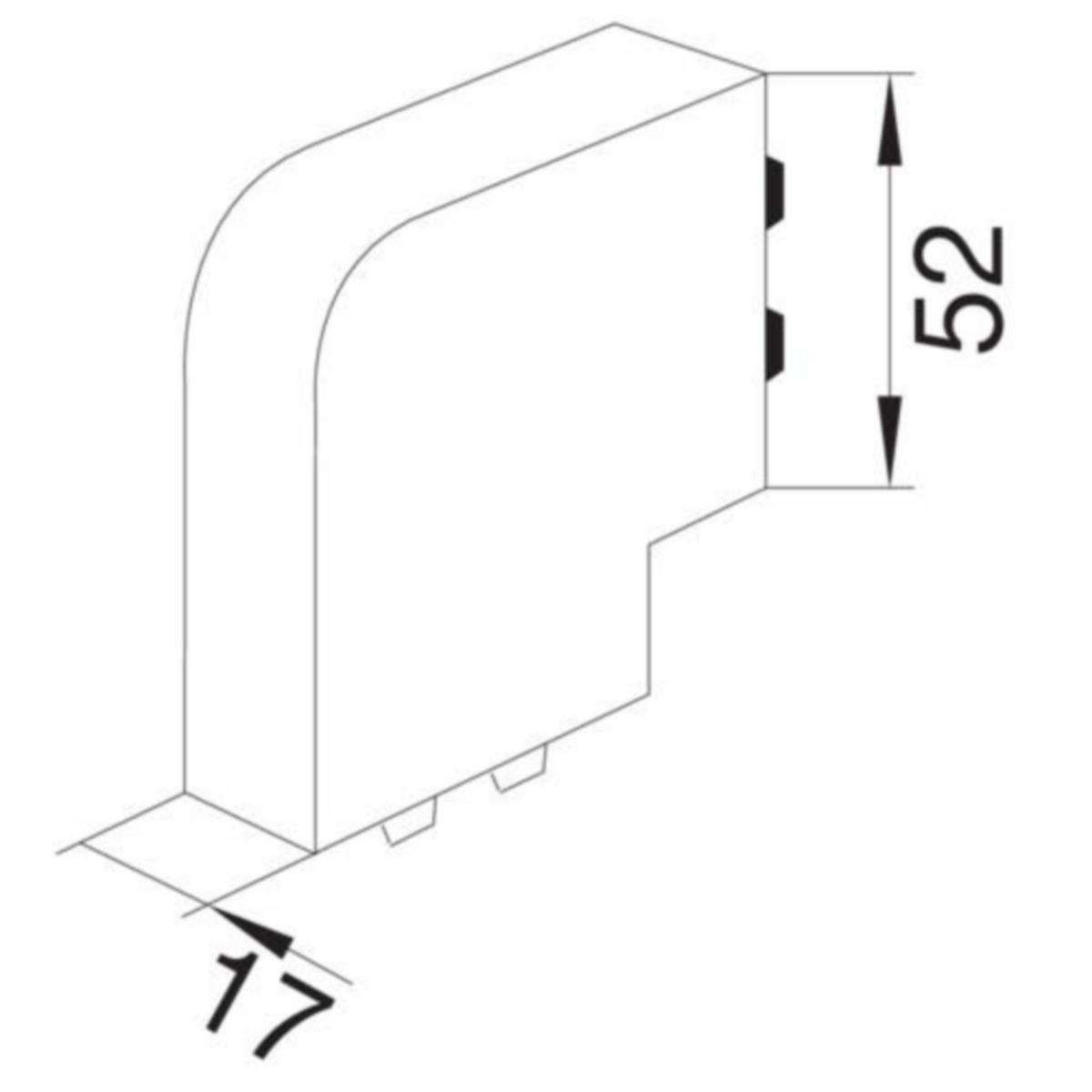 Tasokulma ovenkarmikanavalle SL 17x52 mm, sahauspinnat peittävä, väri liikenteenvalkoinen.Kanavakorkeus: 17 mmKanavaleveys: 52 mmMateriaali: ABSHalogeeniton: kylläVäri: liikenteenvalkoinenRAL-värikoodi: 9016