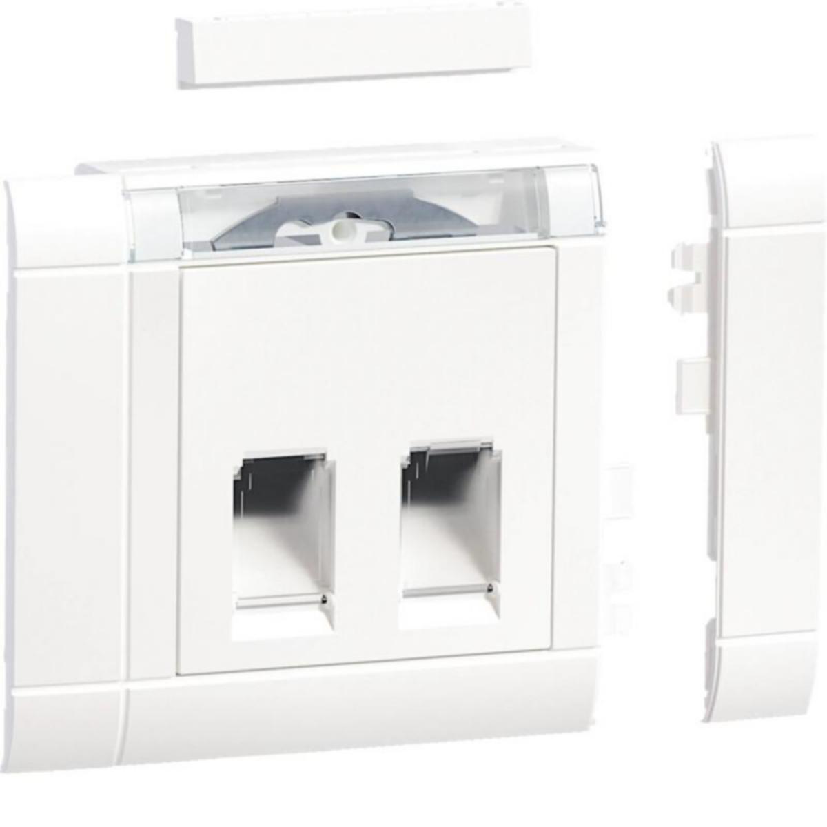 Datarasiapakkaus johtokanava-asennukseen 80 mm korkealla peitelevyllä. Pakkaus sisältää asennuskehyksen, jossa on 17,5 x 18,5 mm:n soviteaukko kahdelle RJ45-moduulille tyyppi 4 (Schneider Actassi S-One DPM). Asennus liitinsovitteeseen soviterenkaan Schneider tyyppi 3065800xx kanssa. Pakkaus on kätevä all-in-one ratkaisu lähiverkon työpisterasioinnin asennukseen johtokanaviin etureunakiinnityksellä. Kaksiosainen pölysuojaluukuilla varustettu keskiölevy kiinnittyy asennuskehykseen pikakiinnityksellä ilmantyökaluja. Peitelevyyn kojerasiaan kiinnitettävä merkintäkenttä on yhteensopiva 9 mm merkintäliuskojen kanssa. Datarasia voidaan rivittää modulaarisesti 71 mm yhdistelmäetäisyydellä vierekkäisten rasioiden kanssa.