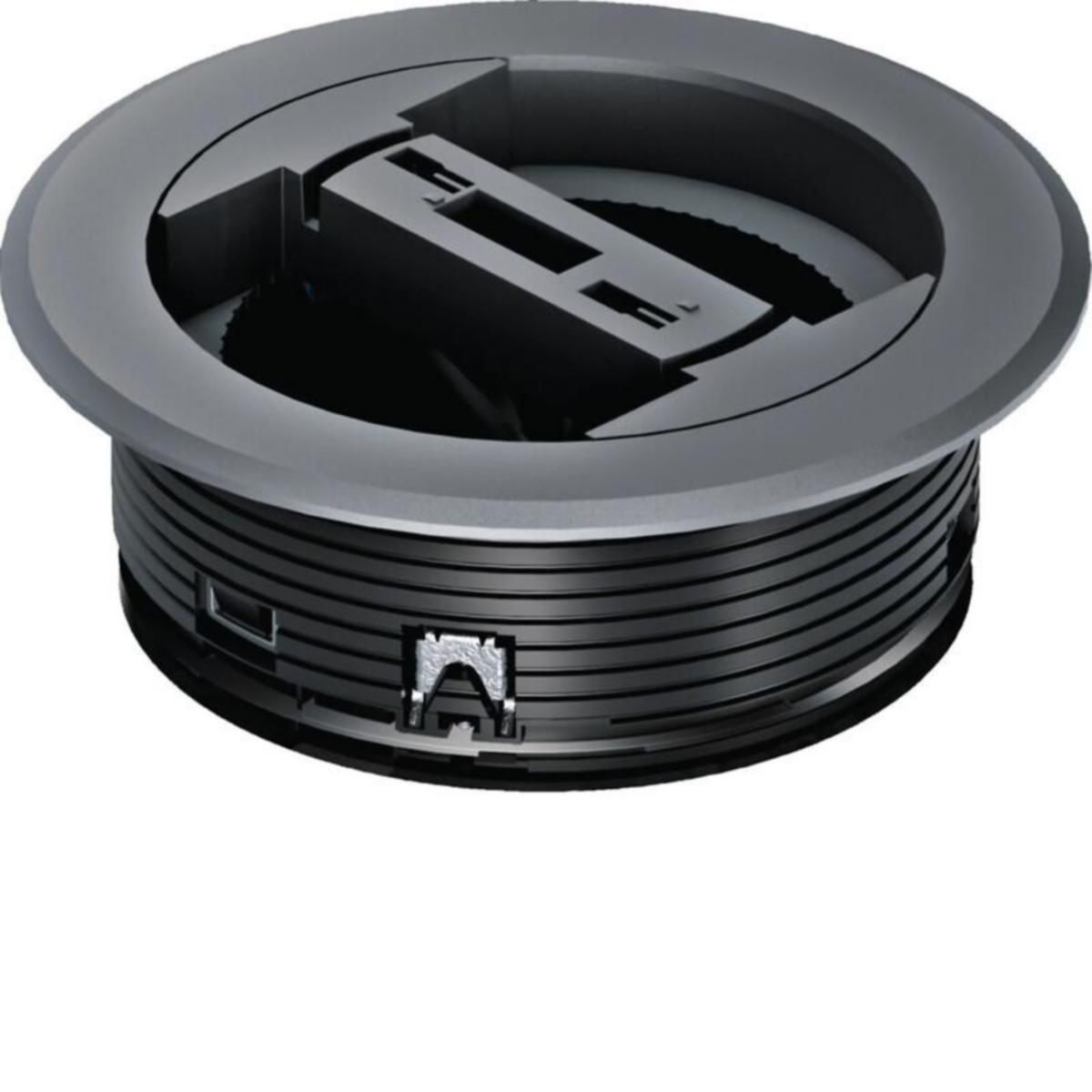 Kaapeliläpivientirengas muovista pyöreän kaapelisuojan RK1 kiinnikkeellä lattian ja työtason välille tehtävään asennukseen. Asennus kiinnityskynsin minimissään 32 mm paksuihin korotettuihin tekniikkalattioihin. Kiinnitys sitä ohuempiin lattiapintoihin erikseen tilatavan kiristysrenkaan BSR02R kanssa. Asennuskehys asennusaukkoa peittävä, irrotettavalla keskikannella, asennusaukko d = 112 mm, ulkohalkaisija 150 mm.