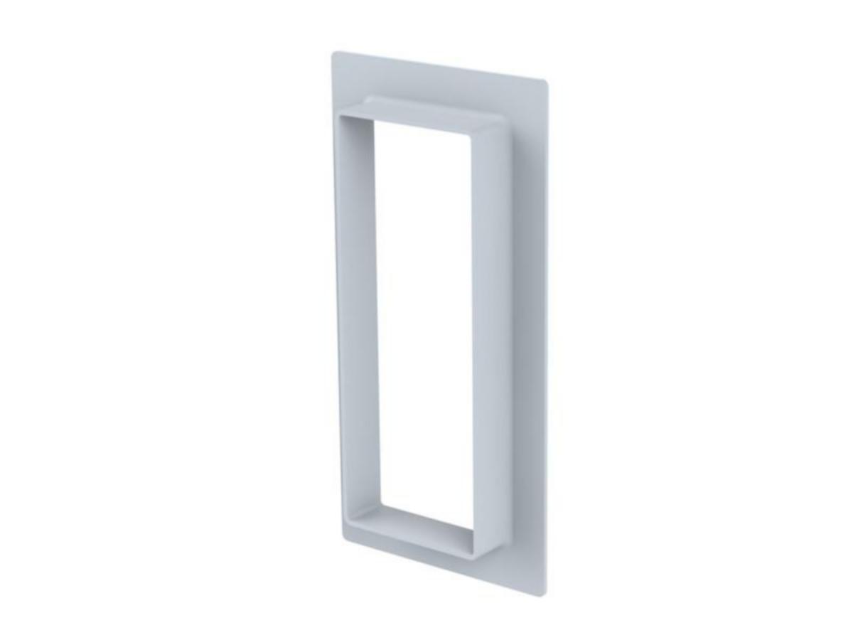 Läpivientikaulus Instal® johtokanaville. Läpivientikaulus viimeistelee asennuksen kauniisti, kun läpivientikaulus asennetaan johtokanavan loppukohtaan. Läpivientikaulus on yleisin johtokanavan ja seinän liitoskohdassa.