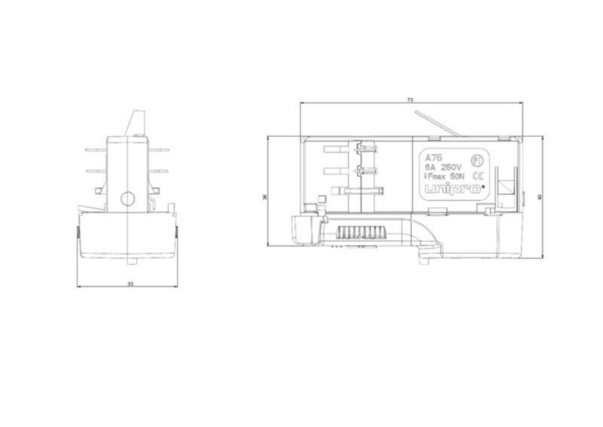 KOSKETINKISKOADAPTERI UNIPRO UNIPRO A75B 6A 250VAC MUSTA