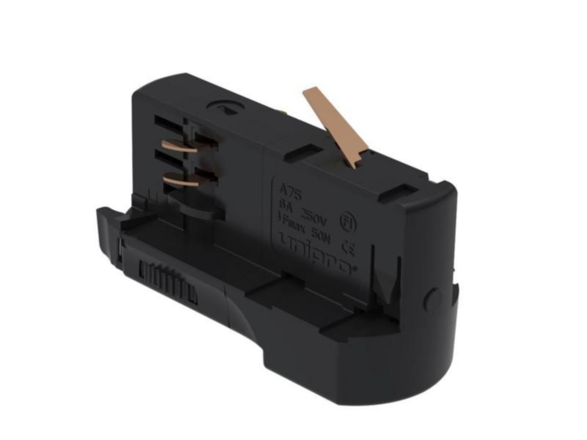 Universaali kosketinkiskoadapteri nopeisiin, sujuviin asennuksiin. A75 valaisinadapteria käytetään pääasiassa kohdevalaisinten asennuksiin. A75 on suunniteltu yhteensopivaksi useimpien 3-vaihekosketinkiskojen kanssa. Musta kosketinkiskoadapteri on upea tummanpuhuvissa, tunnelmallisissa kosketinkiskoasennuksissa.