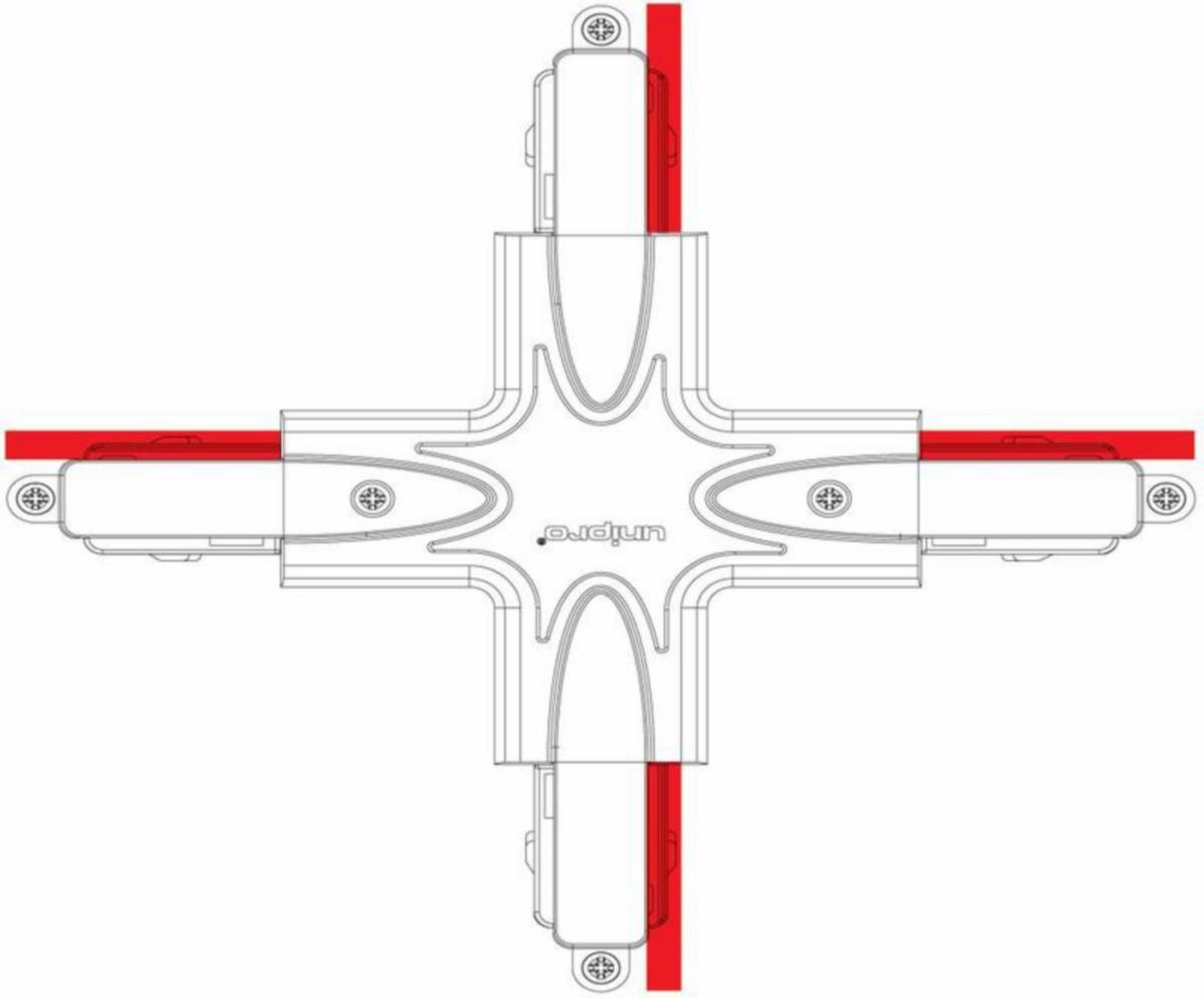 X-kappale sujuviin kosketinkiskojen yhdistämisiin. X-kappaleessa on sähkönsyöttömahdollisuus. Valkoisena yhdistää valkoiset kiskot kauniisti ja on siisti jokaista taustaa vasten.